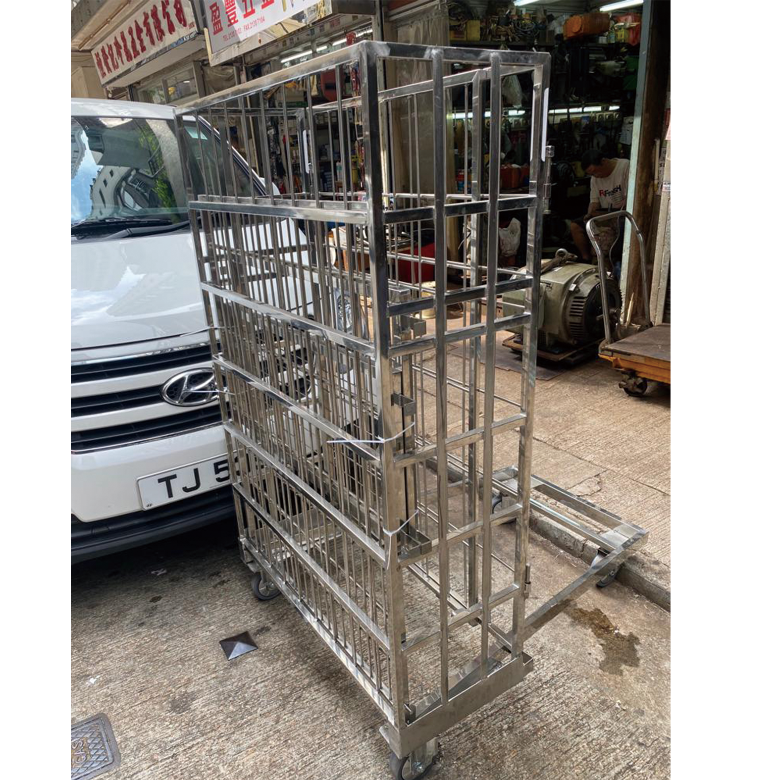 【產品資料】 訂造尺寸 L:950mm(內計)xW1200mm(內計)x1650mm(地下至頂計) 不銹鋼活動式網層板 不銹鋼活動式框架 5”PP(05)固定轆 5”PP(05)活動轆